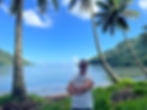 You can go ashore via a small gangplank. A few women with flower wreaths in their hair and a ukulele duo greet us. I pose next to a large, fully tattooed man holding a conch shell, a seashell you can blow into. Tattoos are really a thing here.